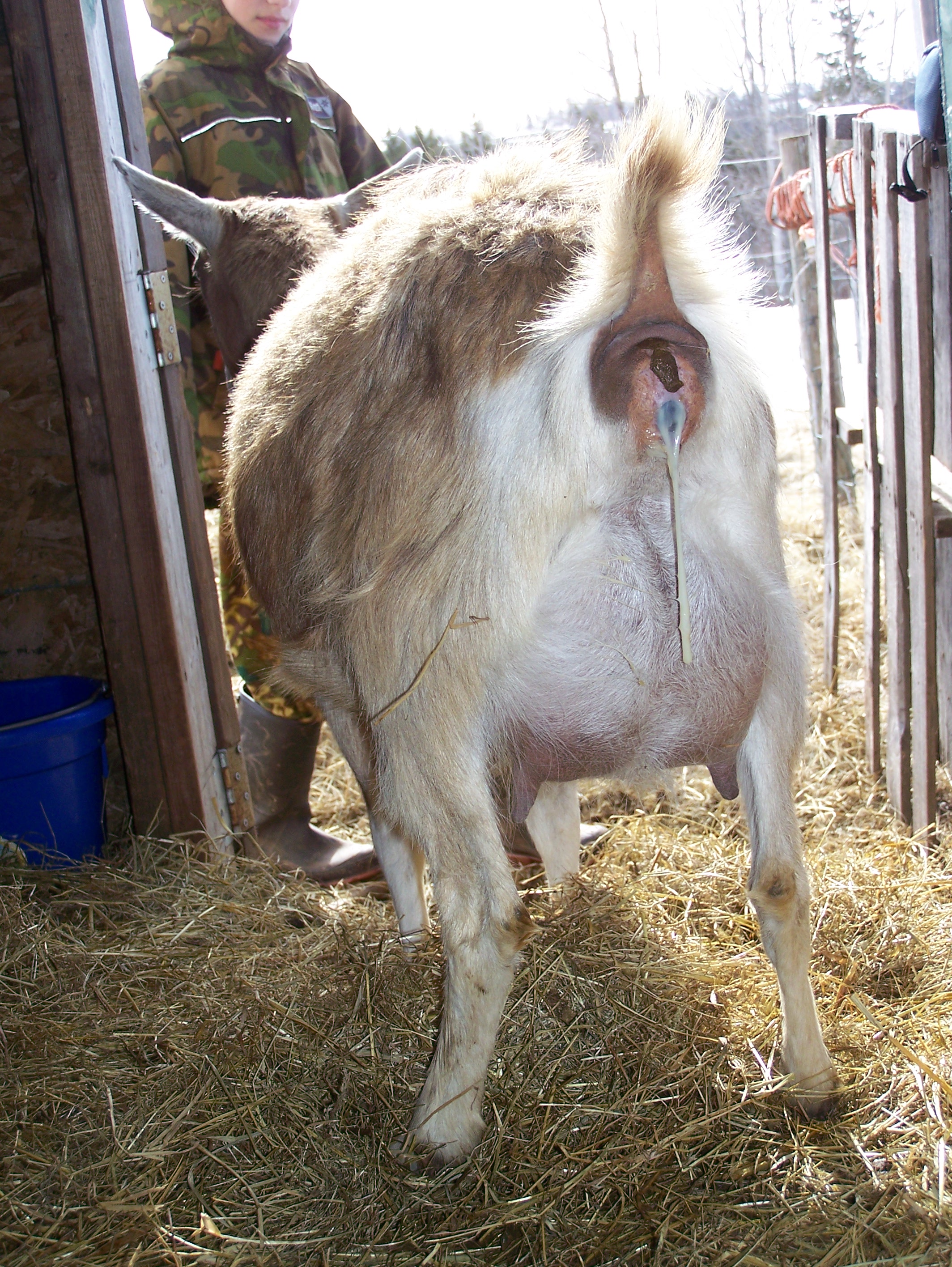 This morning we went out to the barn to find that Clover was in labour, after being two days overdue! We were able to capture the entire thing on camera, as it had just begun. Believe it or not, this is the first kidding we have been able to attend from start to finish. We usually walked in as the kid was halfway out or already born.